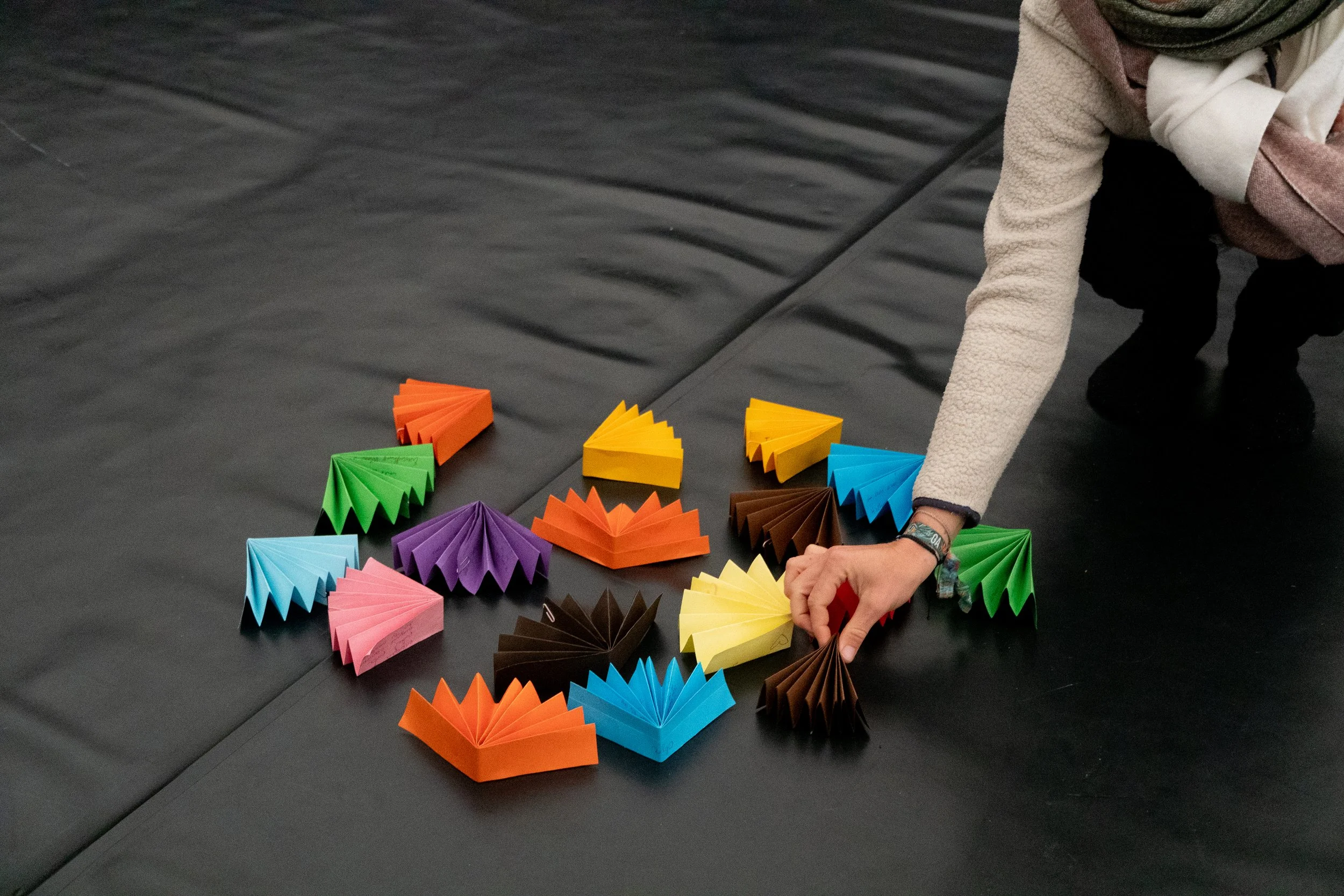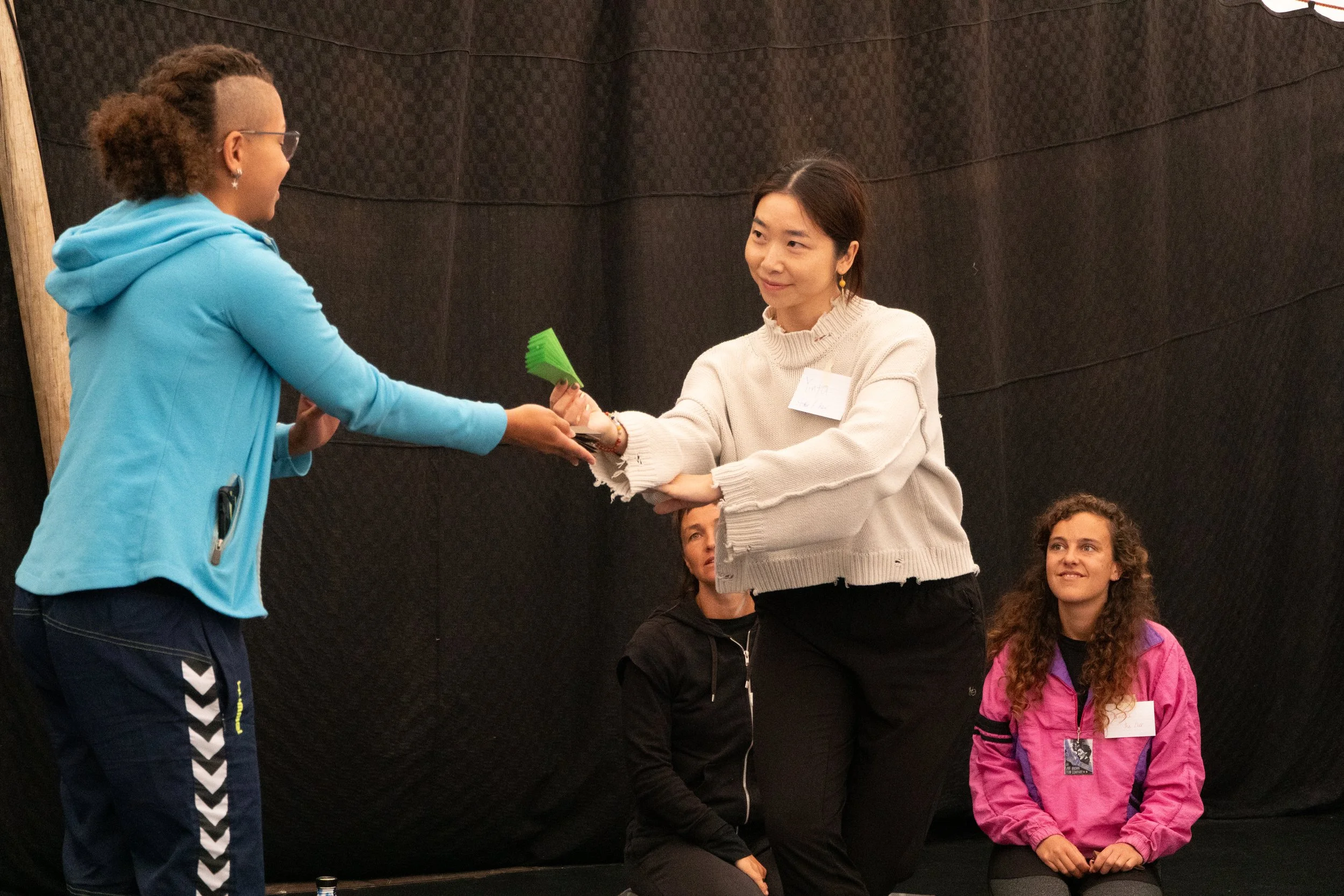Yinfu leitet den Workshop von einer Einführung in die Hintergründe bis hin zur Praxis des Schreibens, Faltens und Tanzens mit Fächern. Die Teilnehmerinnen lernen, wie man „Nüshu女书”-Zeichen schreibt, und entwickeln gemeinsam Bewegungen wie „auf Fächer schreiben”, „Fächer untereinander austauschen”, „Fächer lesen” und „mit Fächern tanzen”.